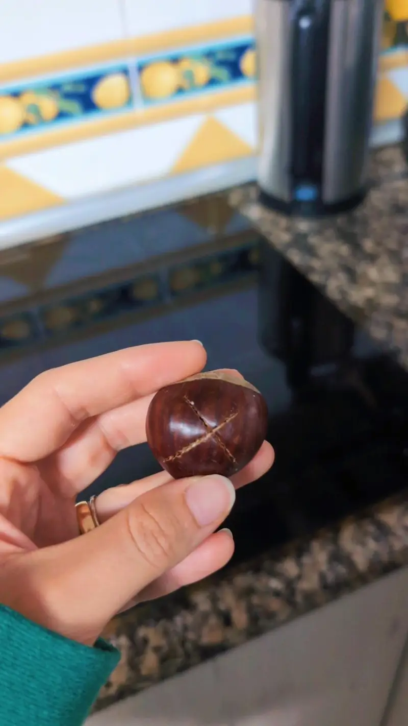 1-Cortar a pele das castanhas em cruz;